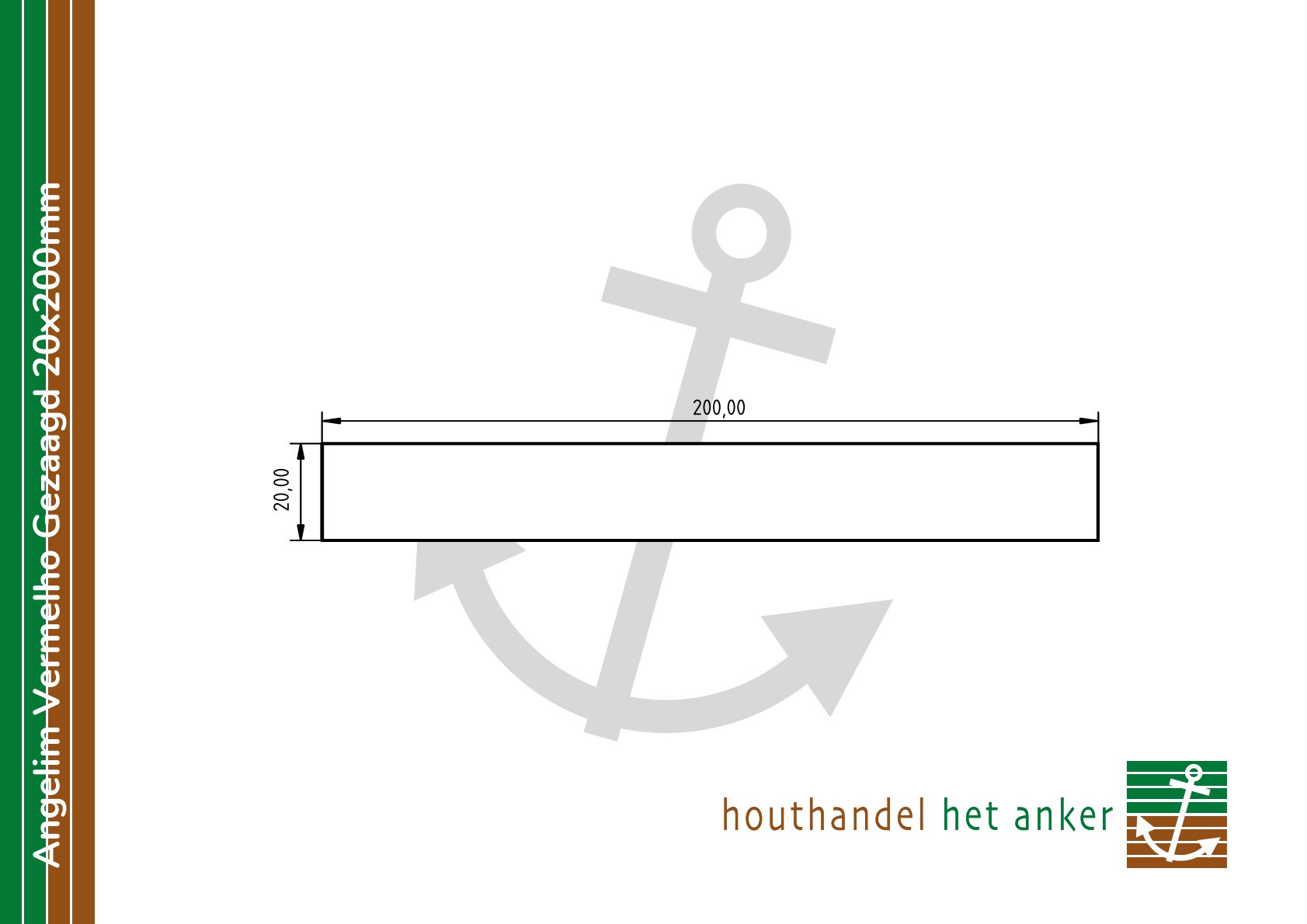 Deze gezaagde Angelim vermelho plank is een tropisch hardhout afkomstig uit Zuid-Amerika. De plank heeft een kopmaat van 20x200 mm. Angelim vermelho biedt van nature een uitstekend weerstand tegen weersinvloeden en direct grondcontact. Het hout heeft een opvallende donkerrode tot bruine kleur en een ruwe, robuuste uitstraling dankzij de gezaagde afwerking. Onbehandeld verandert de kleur van het hout door weersinvloeden geleidelijk in een natuurlijke zilvergrijze tint. Angelim vermelho is een dat houtsoort vrij van noesten is en bekend staat om zijn sterkte en lange levensduur.